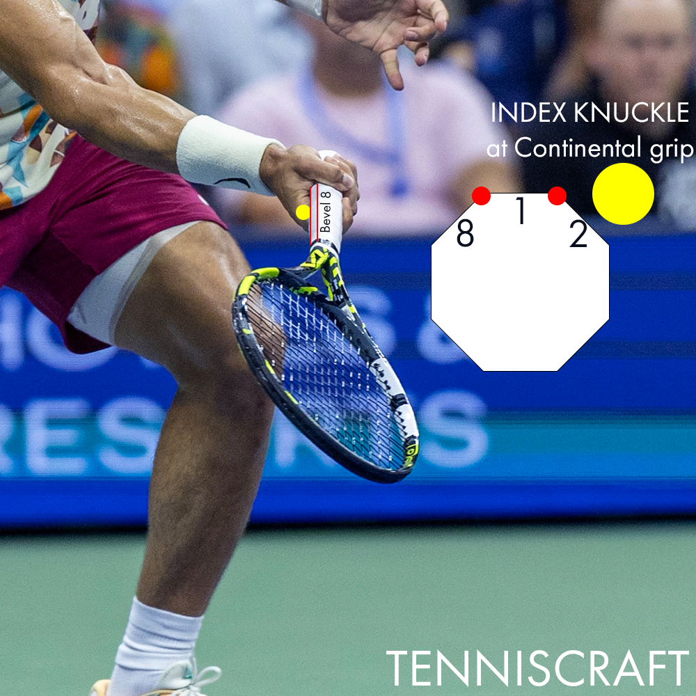 We determine grip by where the bottom of the index knuckle lies on the grip. It sits on bevel 2, making it a continental.