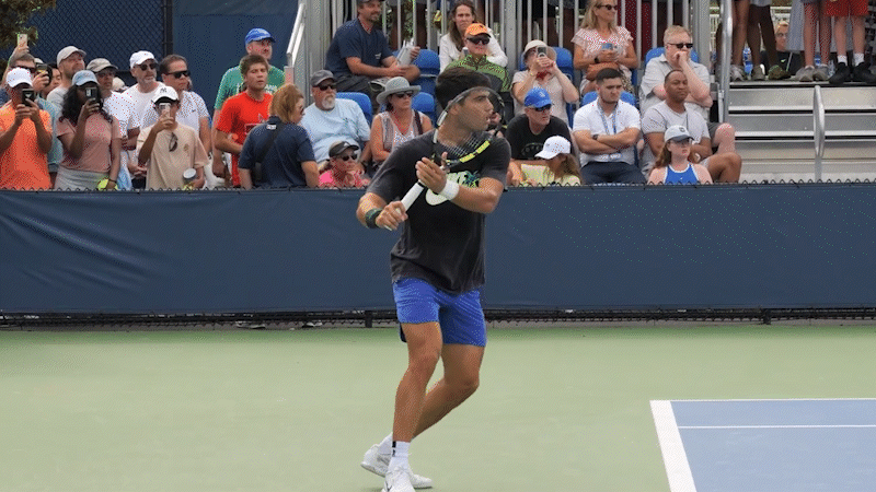In this clip from Volley Viper Tennis, we get a clean side view of Alcaraz’s forehand preparation and the moment he transitions into the drop shot slice. The grip change is subtle, but visible.